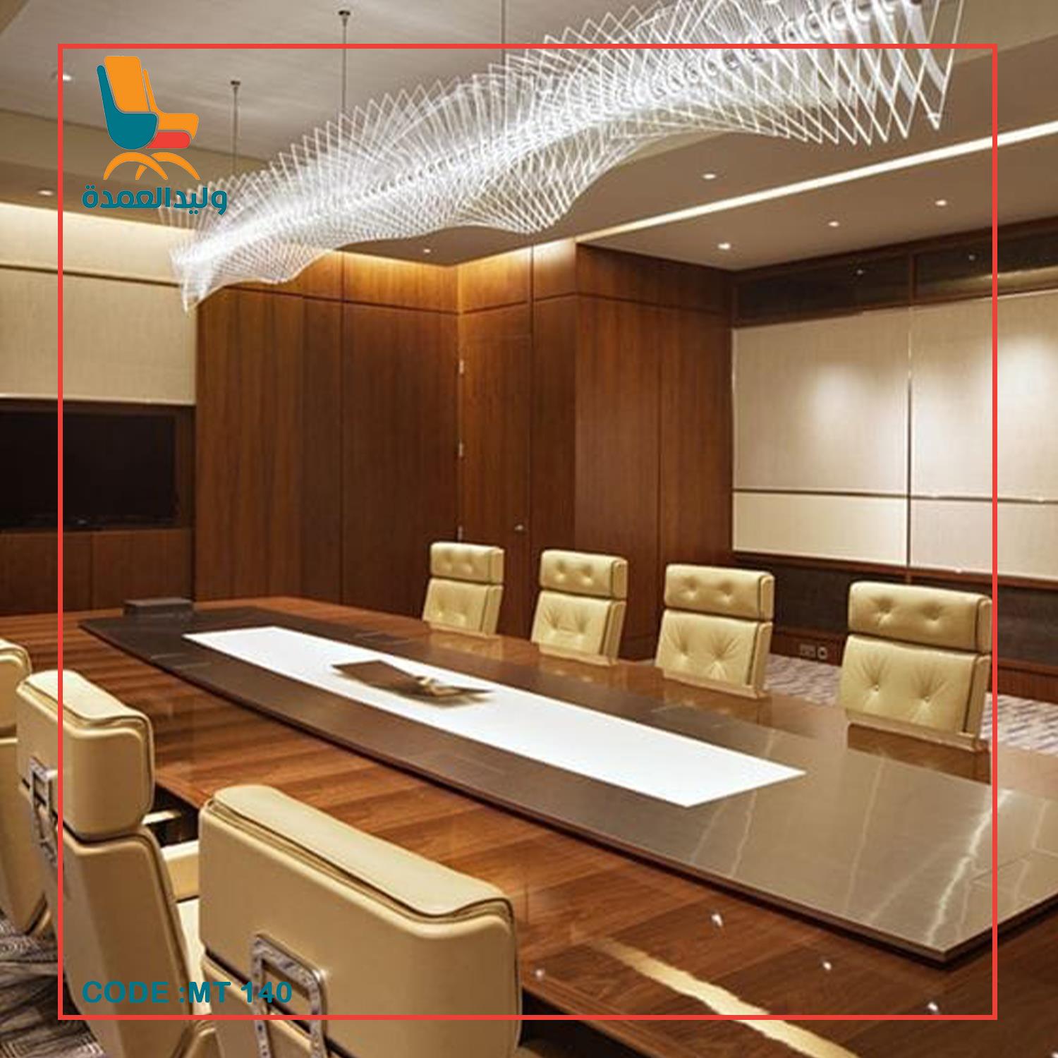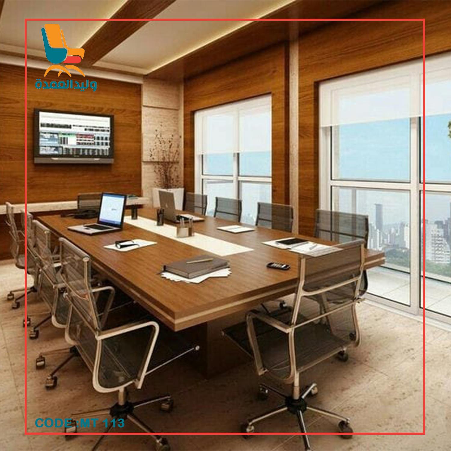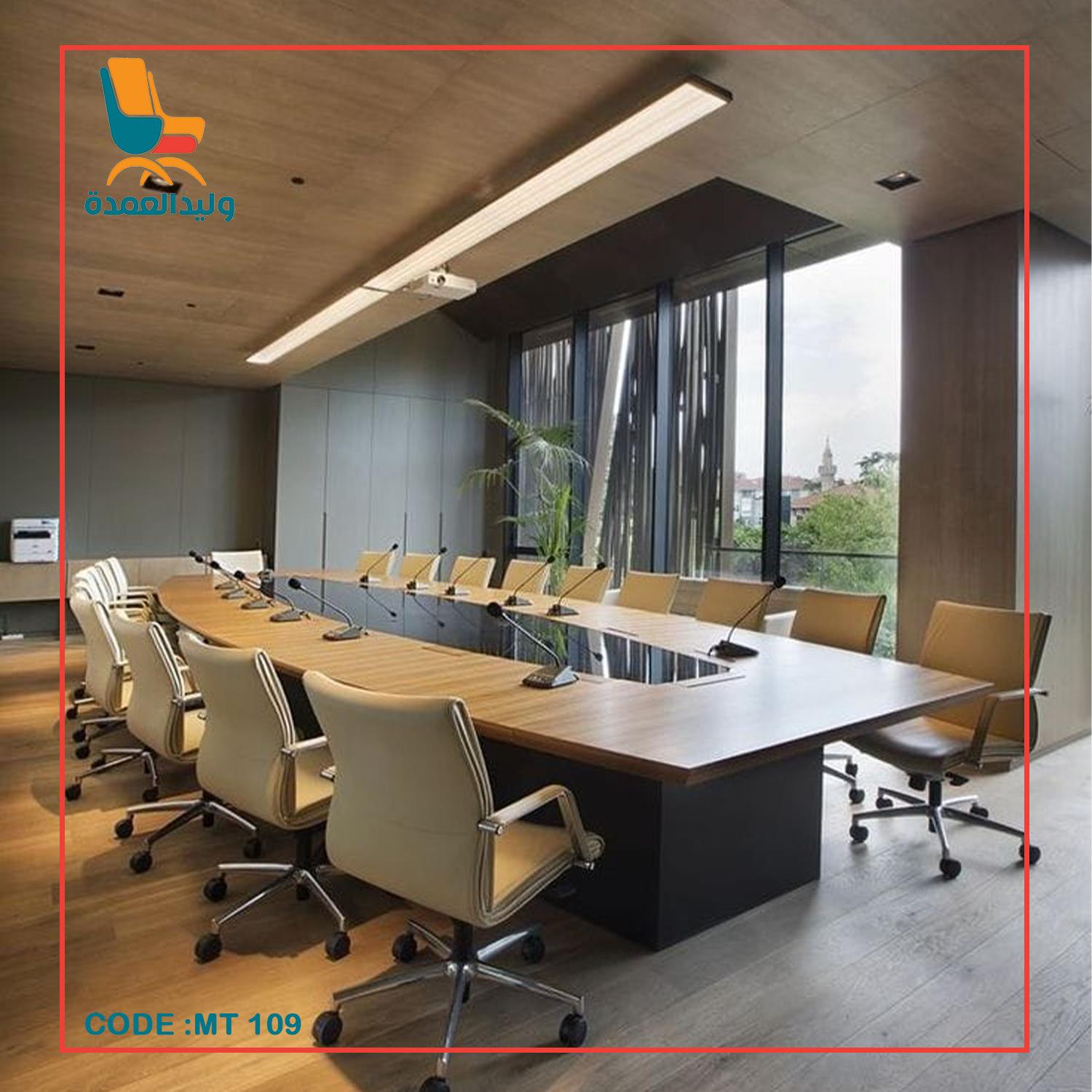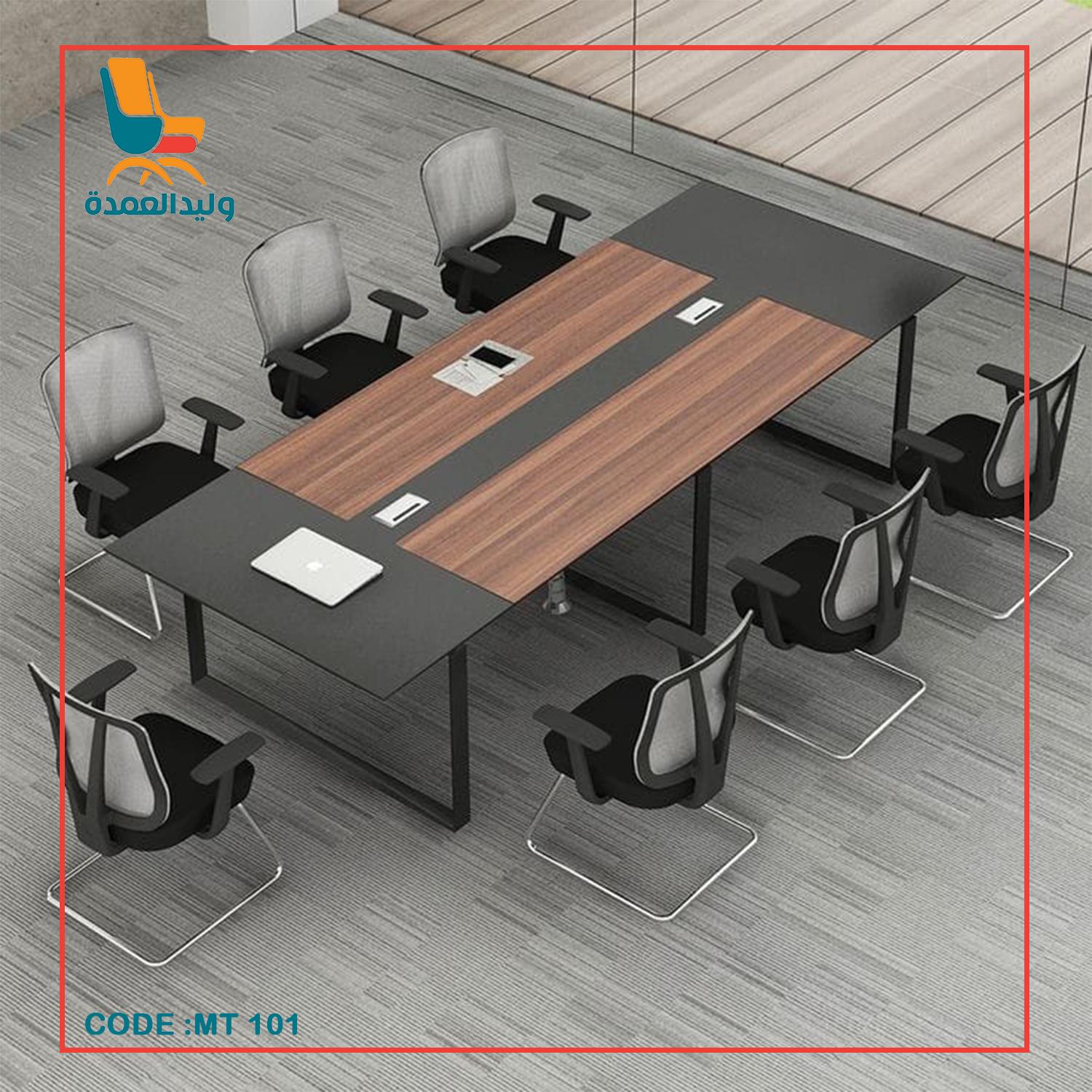 تربيزة اجتماعات أنيقة بتصميم عصري توفر مساحة مثالية للنقاشات والعمل الجماعي، مصنوعة من خامات متينة عالية الجودة، وتمنح قاعة الاجتماعات لمسة احترافية تعكس هوية المكان.