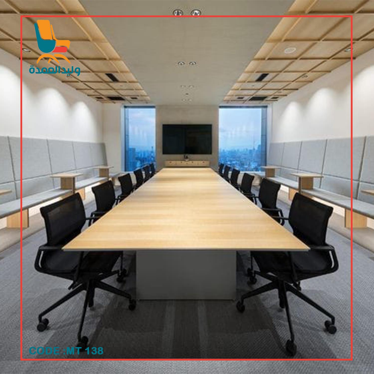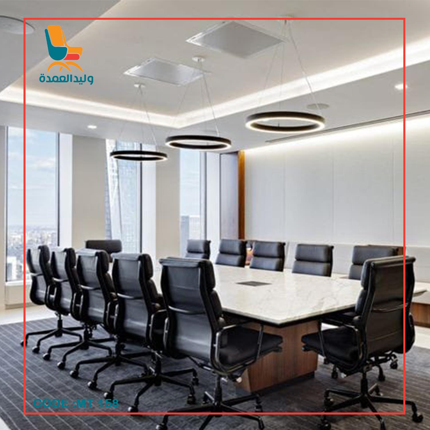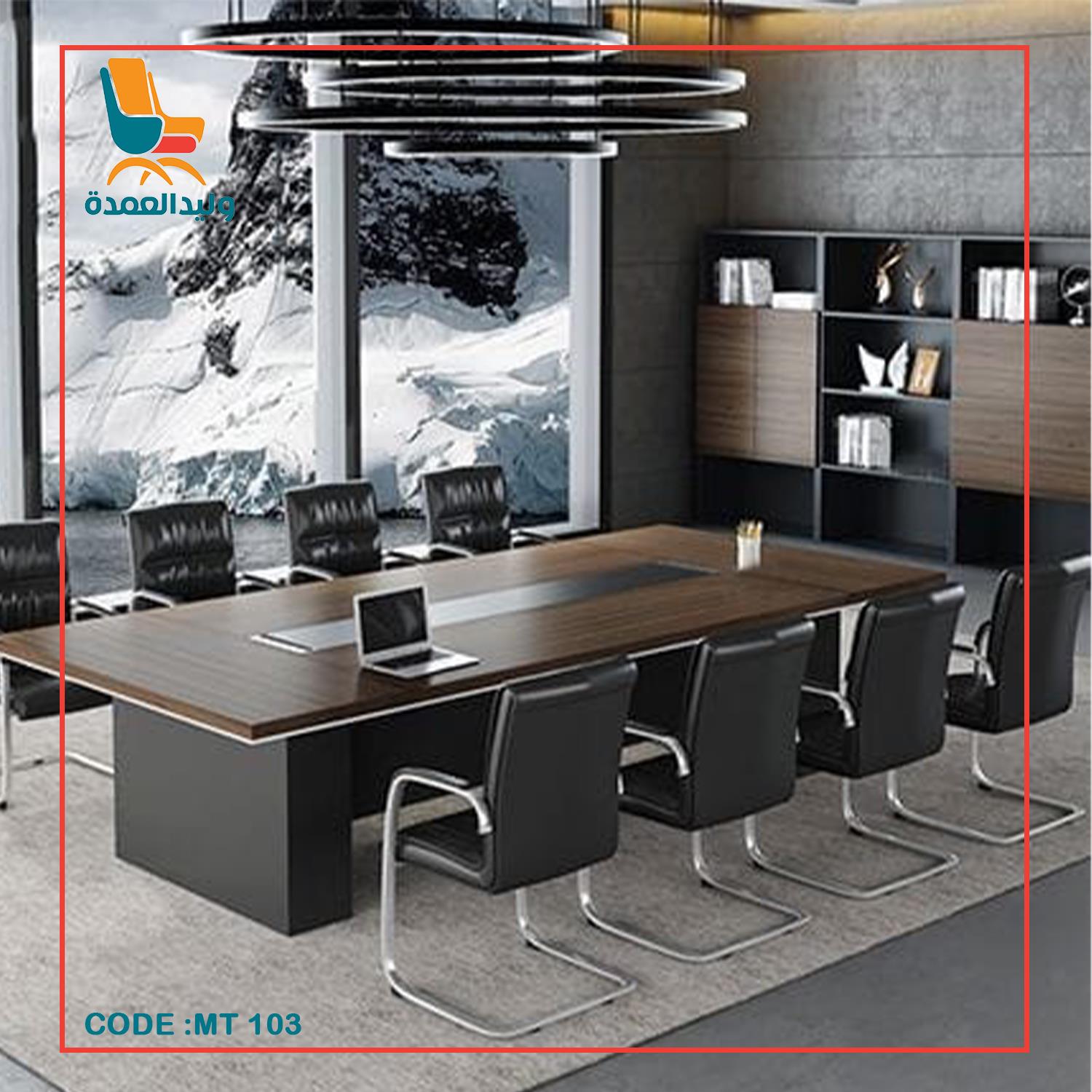 تربيزة اجتماعات أنيقة بتصميم عصري توفر مساحة مثالية للنقاشات والعمل الجماعي، مصنوعة من خامات متينة عالية الجودة، وتمنح قاعة الاجتماعات لمسة احترافية تعكس هوية المكان.