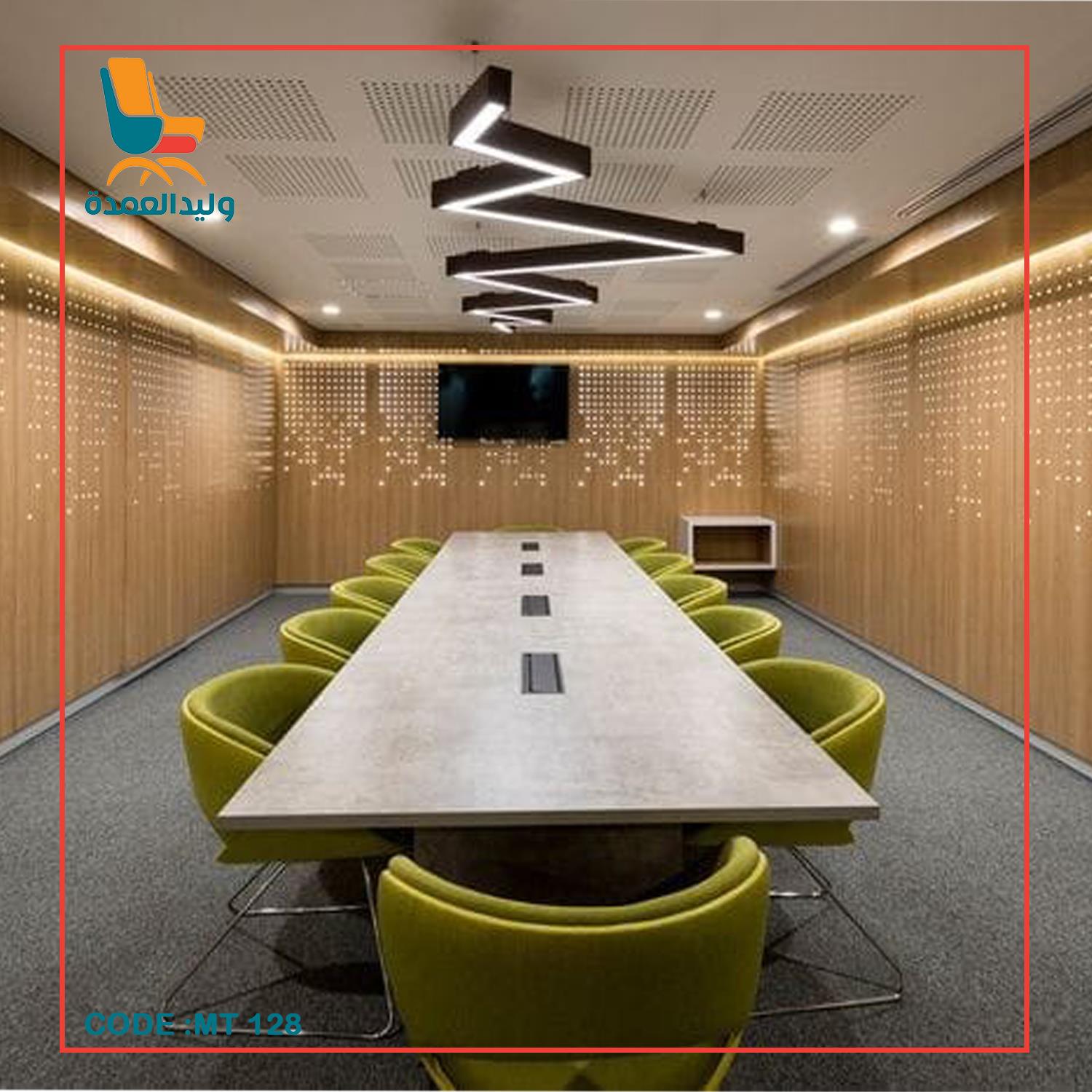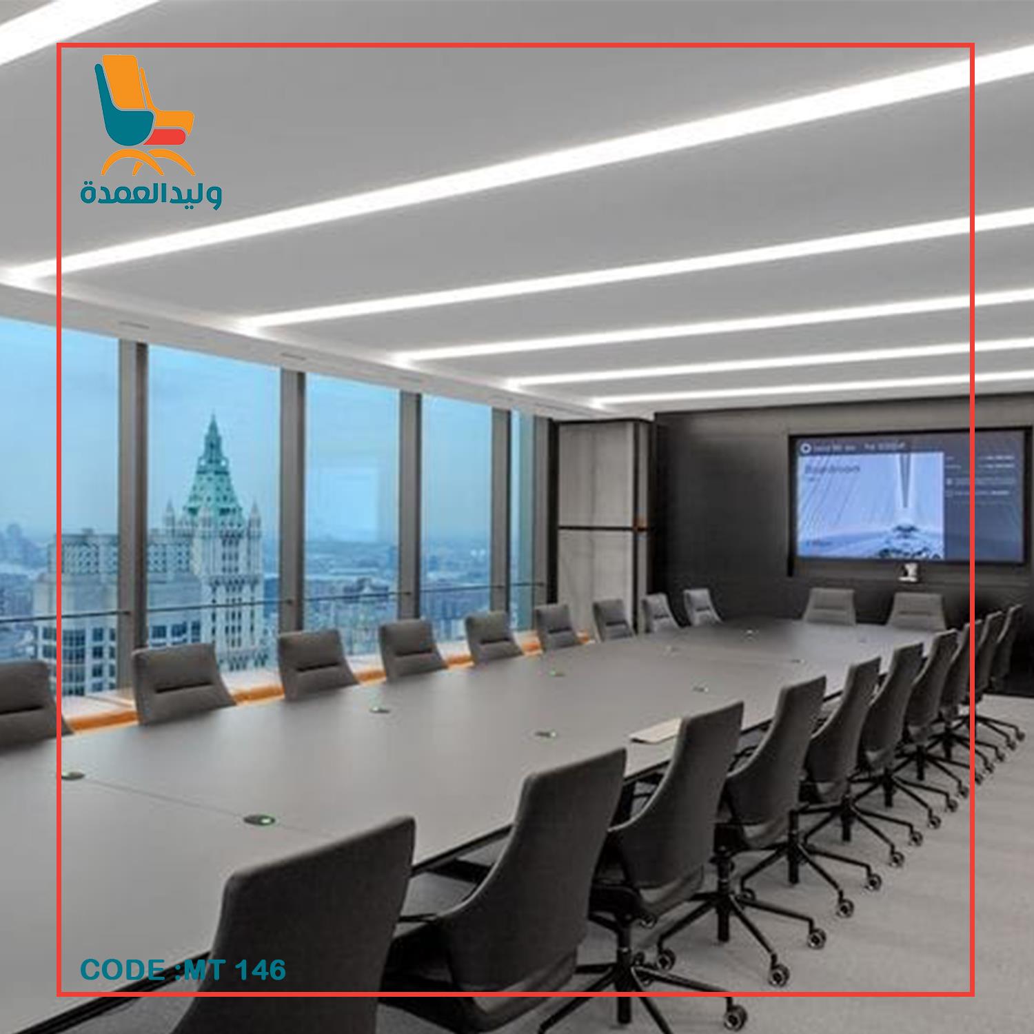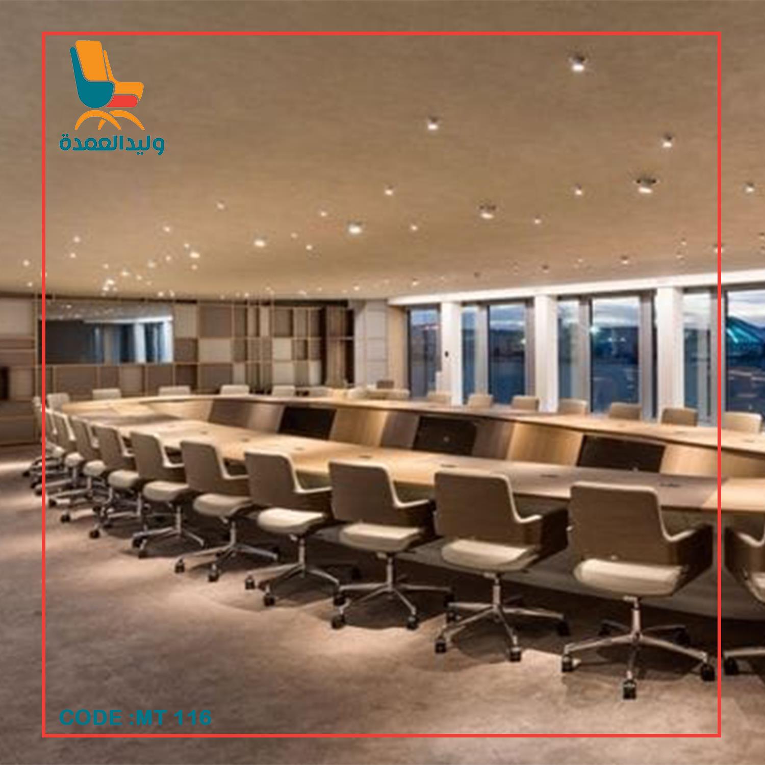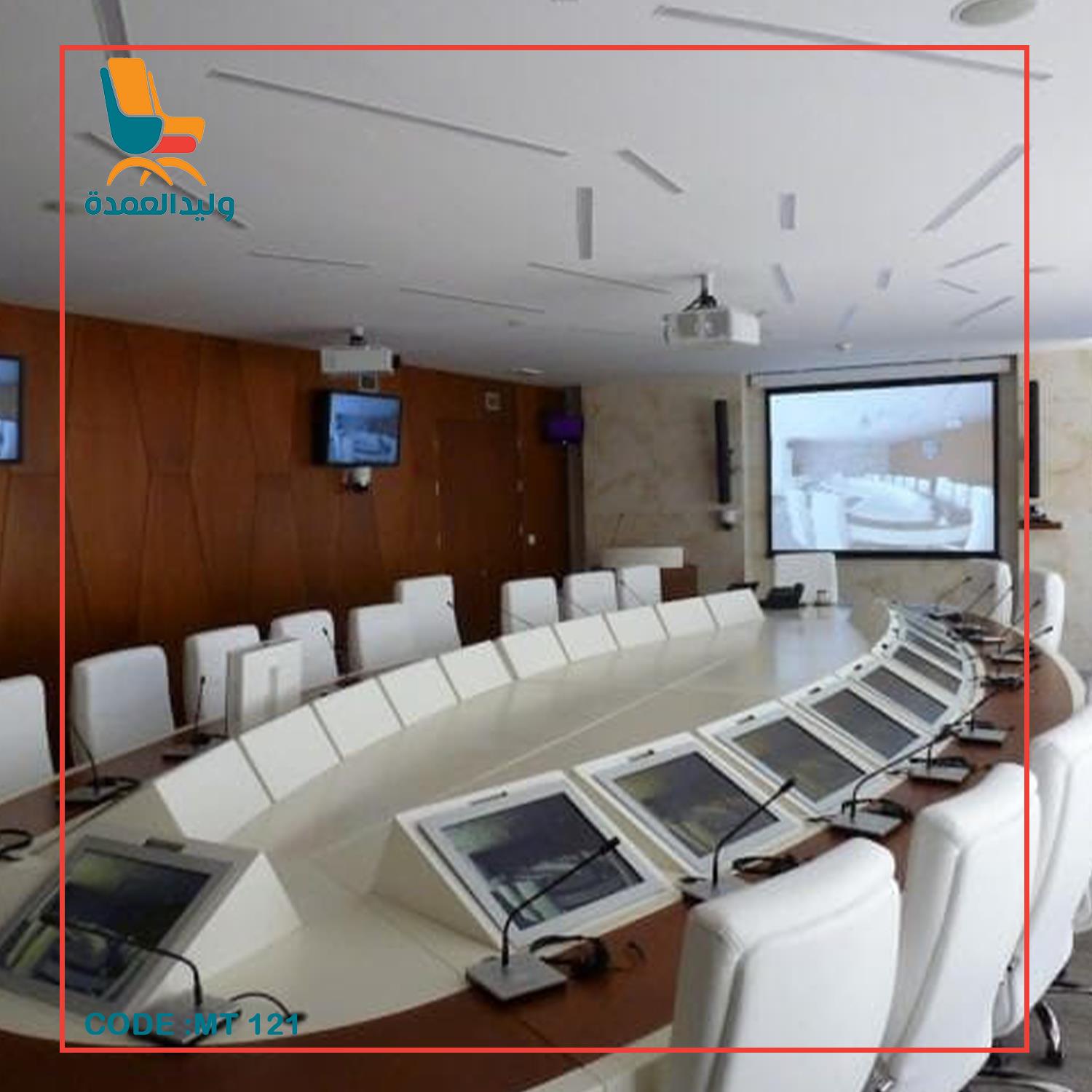 تربيزة اجتماعات أنيقة بتصميم عصري توفر مساحة مثالية للنقاشات والعمل الجماعي، مصنوعة من خامات متينة عالية الجودة، وتمنح قاعة الاجتماعات لمسة احترافية تعكس هوية المكان.